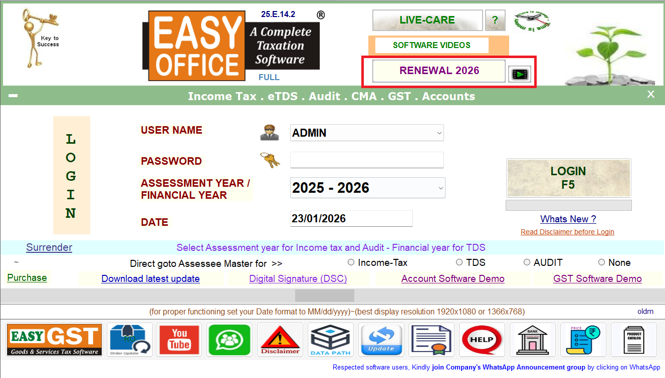 Step - 6:- Open EasyOFFICE module as per your renewal order.